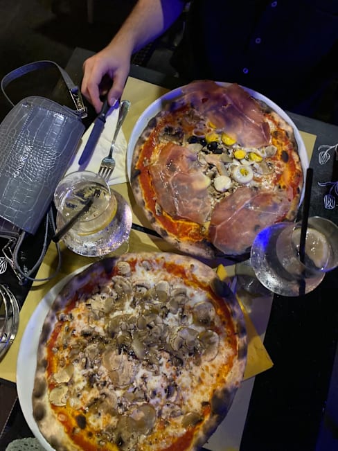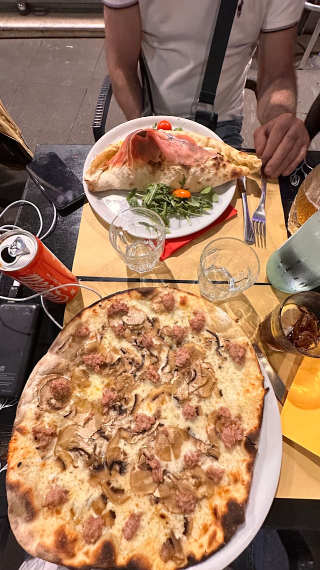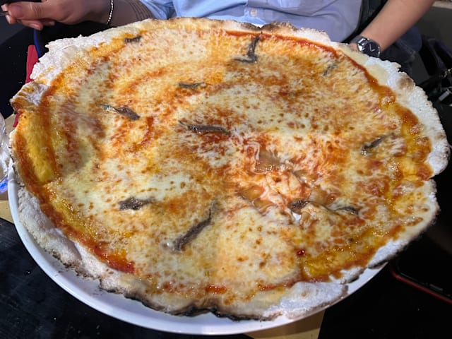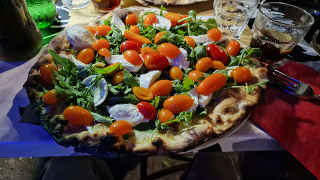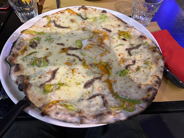 6.5/10The pizza was pretty good and big, but the place is really touristic and kind of expensive for what you get.