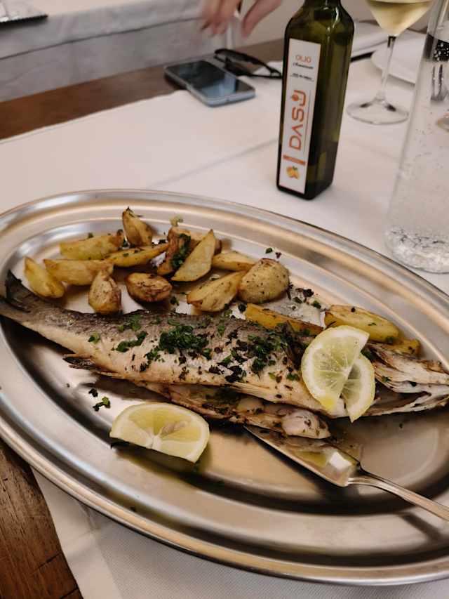 - Pescato del giorno al forno / al sale / in umido / alla brace (hg)