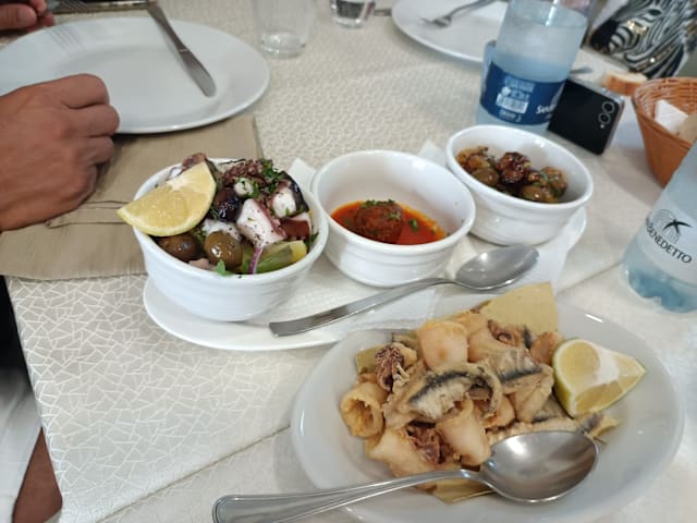 9/10The food was delicious. We had the sardine balls -which were very nice -and we both had pasta which was delicious and hot , service was okay nothing special, looked like the waiter was in a bit of a mood 🤷♀️ but I would definitely recommend going there for the food, it was gorgeous.