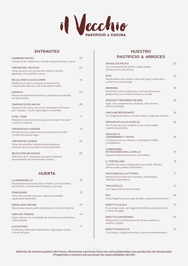 10/10Il Vecchio is without question one of my favourite restaurants in Tenerife, and quite possibly the very best. From the moment you arrive, every detail contributes to a refined dining experience: the attentive staff, the welcoming atmosphere, and a kitchen that consistently excels. The open view into the kitchen is captivating, offering a glimpse into the precision and artistry behind each dish. To dine here is not only to enjoy exquisite food, but also to appreciate the craft and passion that goes into each bite.