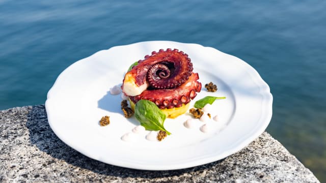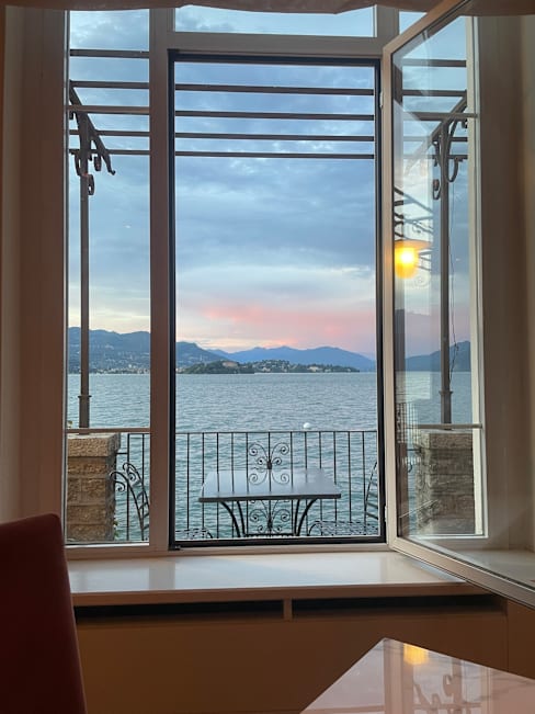 10/10Fabulous view of Isola Bella & Lake Maggiore from outside terrace at south end if tiny Isola Superiore. Magical dmall lake Boat transfers available through restaurant. Perfectly prepared delicious meal. Smiling friendly impeccable service & menus in English, Italian, etc. Foods & Wines from immediate region highlighted. Go on clear day or night if possible but definitely go.