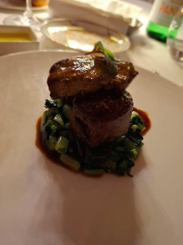- Filetto di frisona, fois gras, salsa al campari