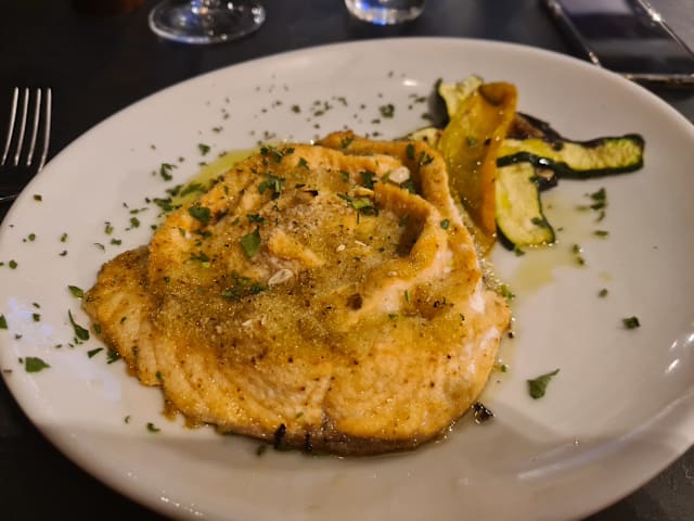 8.5/10A nice place to have dinner outside in the evening. Service is excellent and prompt, food is pretty good. We had the T-bone steak which came on a hot plate so you can decide how well you want your cut. The lamb chop was a little overcooked. They prepared a plate of fried calamari and prawns which we were looking for but was not on the menu, which was really nice of them. The fried artichoke was a welcome addition, and the octopus and spaghetti with clams was also very well done.