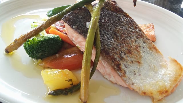 - Salmón fresco a la plancha con verduras salteadas