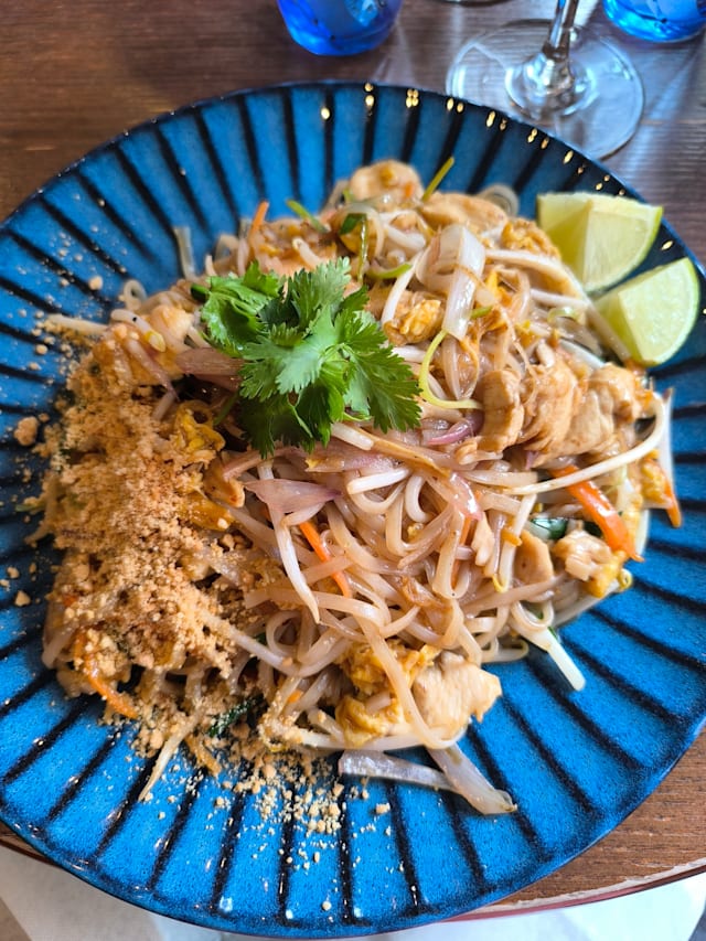 4/10While the satay was good, the pad Thai and curry were the worst we’ve tasted on four continents. There is a real lack of understanding of what Thai food is supposed to be. The curries taste like they are out of a foil packet or a can, as they have artificial thickeners in them rather than relying on the creaminess of coconut milk. The pad Thai and other dishes lack flavor. The staff was friendly but their smiles could not make up for the food.