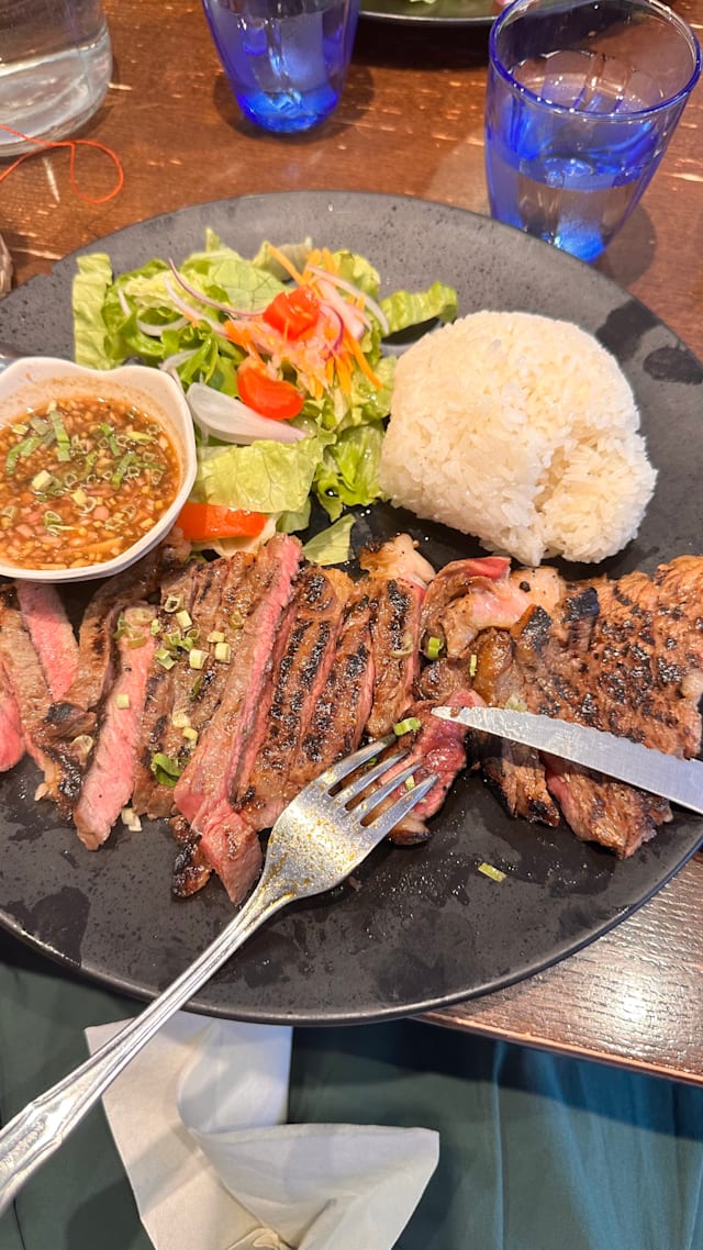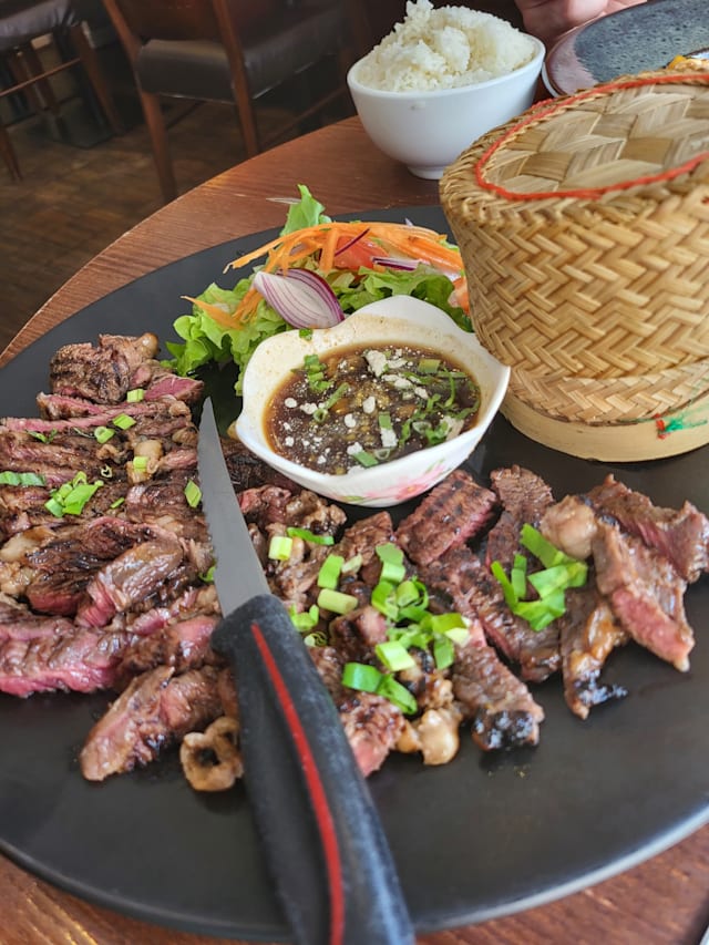 8.5/10Great place, good portions.had the crying tiger and sticky mango rice for dessert, really enjoyed it!