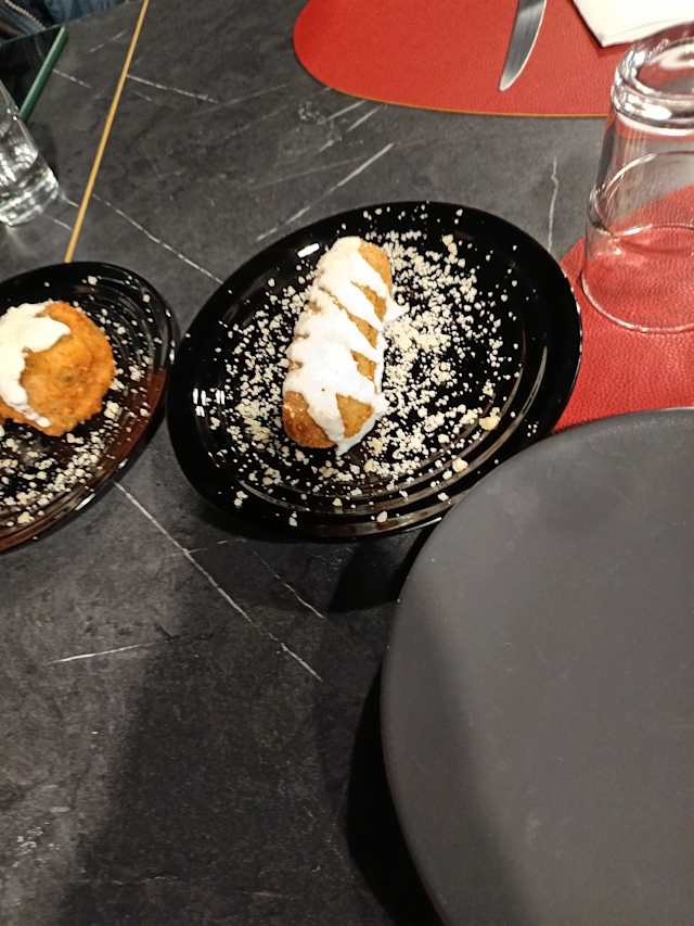 - Calzone ripieno fritto: ricotta di bufala, cicoli, ombra di pomodoro, pepe nero, basilico