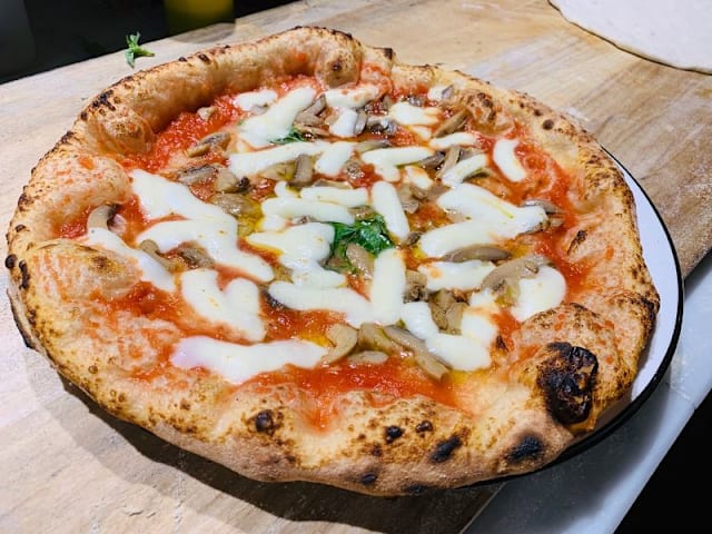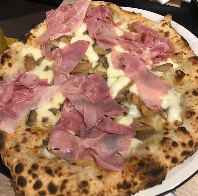 Pomodoro 100% italiano , Funghi champignon, Basilico, Grana, Prosciutto cotto , Olio extra vergine
