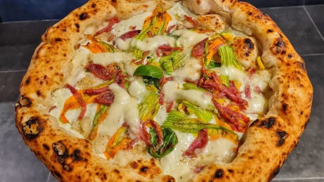 Ricotta, prosciutto cotto, fior di latte di agerola. pepe, olio evo, parmigiano reggiano dop