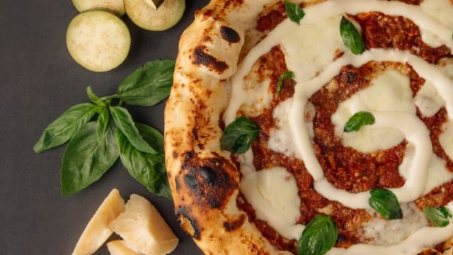 Ricotta, prosciutto cotto. Fior di latte di agerola, pepe, olio evo, parmigiano reggiano dop, basilico