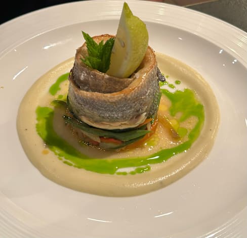 10/10The perfect intimate dining room, attentive but not intrusive service, and the food was delightful! The sea bass was so flavorful with a beautiful zucchini sauce that was light and complimented the julienned vegetables perfectly. So well balanced and just so yummy!! The raviolis were off the charts as was the flan dessert. Highly recommend!
