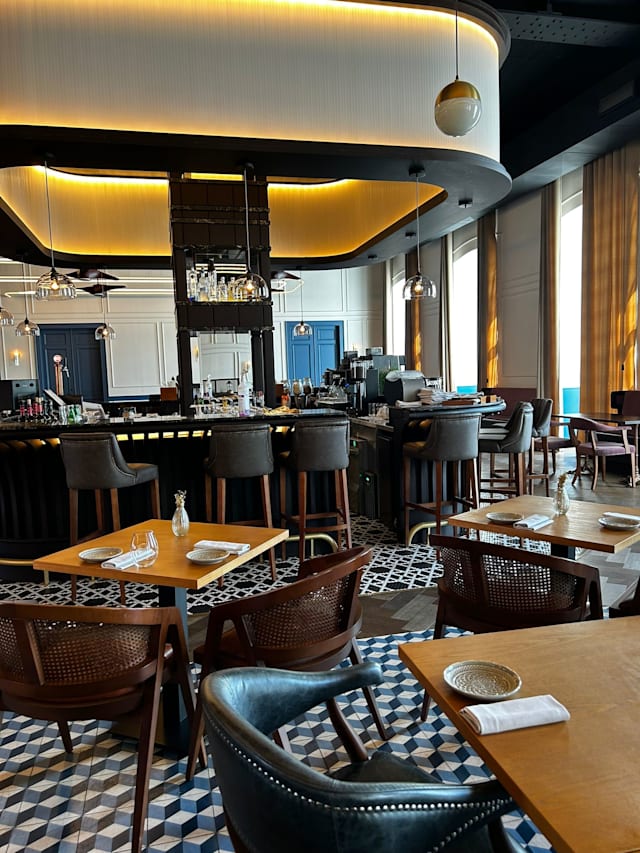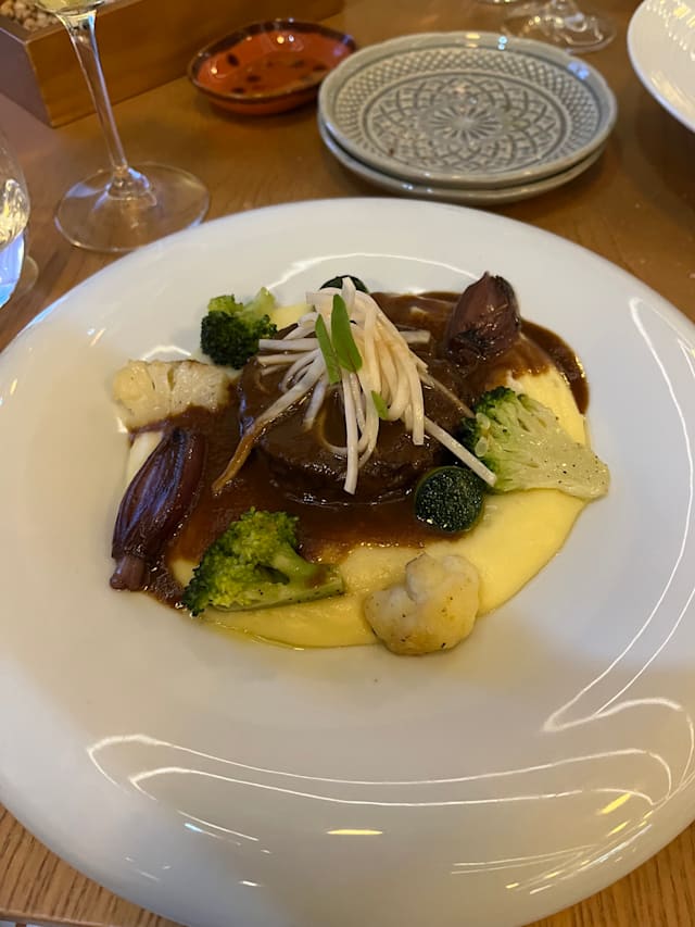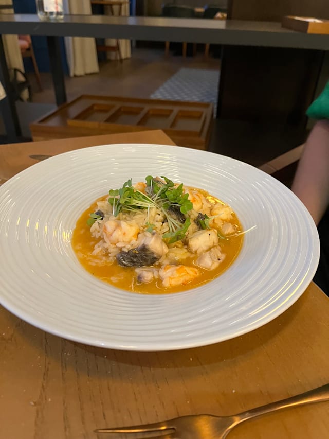 7.5/10Pretty hard to find, inside the hotel, not advertised outside. Hotel restaurant, ambiance not super. Food was original, well prepared and presented, not super for the price we paid. Friendly, informal service. Summed up: a very pleasant lunch.