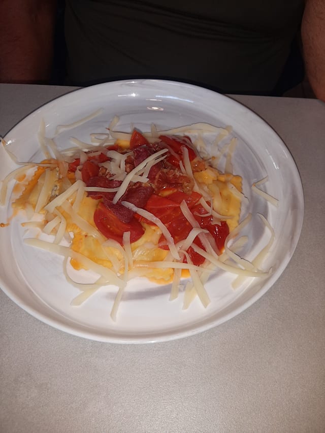 Bresaola, mozzarella di bufala, lattuga, pepe nero e olio extravergine d'oliva.