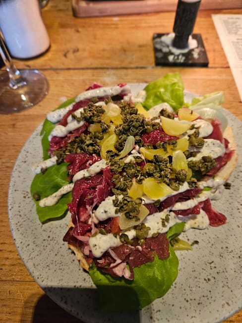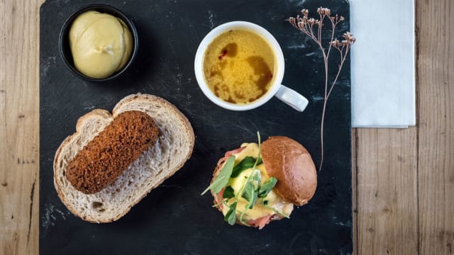 8.5/10In The Waag is a lovely restaurant — beautiful interior and a pleasant overall atmosphere. When we arrived, it felt like they weren’t quite ready for us. There was no table prepared for our group of six, and although they arranged everything fairly quickly, we still had to wait a bit while they figured out where to seat us. The food was tasty, no complaints there. There was some confusion with the menus — we were given both an old and a new version, which led to a few mix-ups. Fortunately, the staff helped us sort it out, and as a nice touch, they even managed to prepare a dish from the old menu that wasn’t listed in the new one. In summary: great setting and enjoyable food, but the initial service could be smoother and more coordinated.