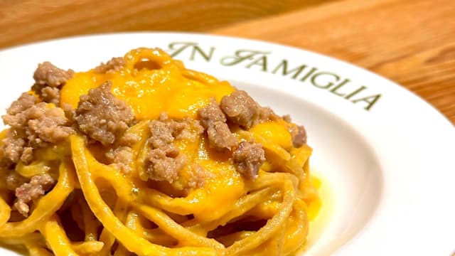 (tagliatelle 40 tuorli accompagnate dal nostro ragù alla bolognese di fassona)