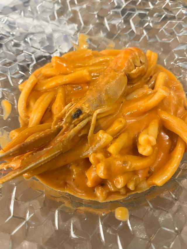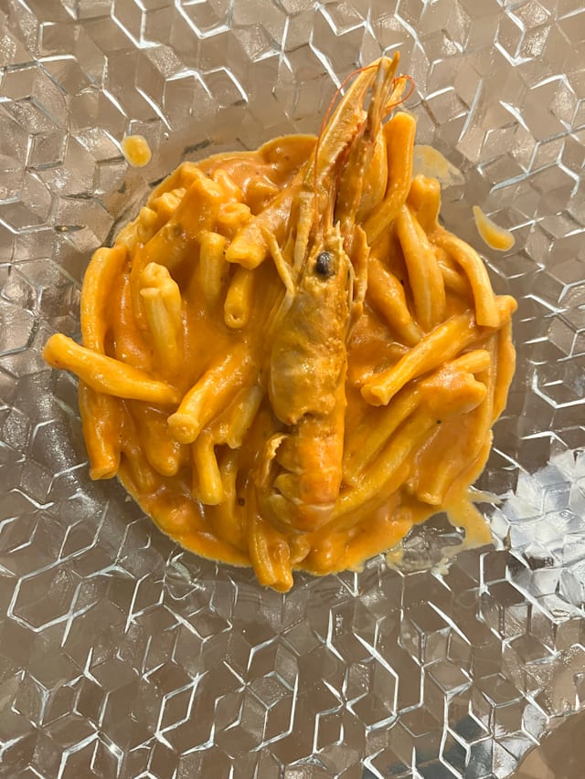 - Tonnarelli all’uovo con tartare di Gamberi Rossi