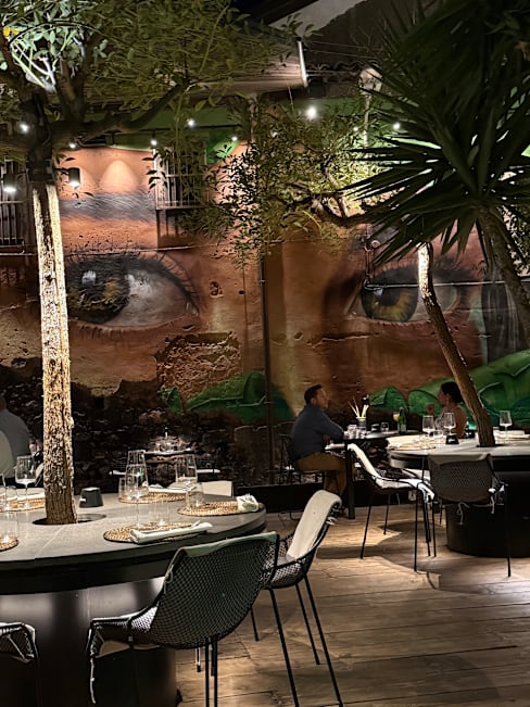 10/10The restaurant is beautifully designed and crafted. We sat outside on a perfect late summer evening. The service was superb and the food was amongst the best we’ve had in Sicily. My sea bass was perfectly cooked and well flavoured. In summary a memorable meal.
