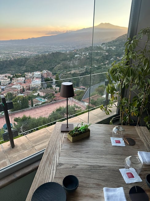 10/10The view of the town and mountain Etna is breathtaking! The atmosphere, good and service is just simply outstanding! Huge thanks to the staff who made our evening beautiful and memorable. Food was delicious!!