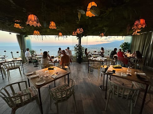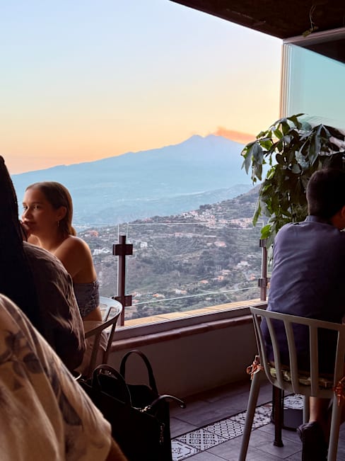 10/10The food was amazing and so was the service. The staff was very friendly. The view of the sea and Etna was stunning. Best to come before sunset and observe every stage of the sky.