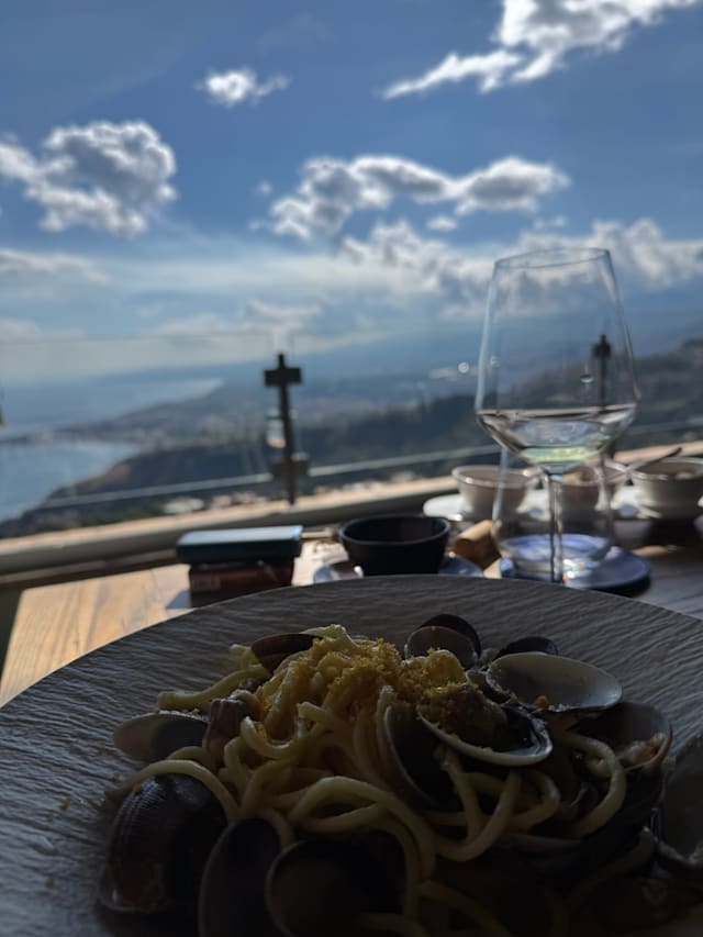 10/10Breathtaking views with delicious food and excellent service. A wonderful lunch spot after a walk up the stairs from Taormina.