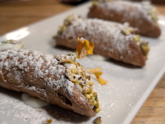 6/10The view from the restaurant is stunning - but that could be perfect for getting just a drink. Because from all the places we've been so far in Sicilly that was the worse option. The deserts were auwful, for example, we barely took one bite from both and the waiter didn't even ask why we don't eat it, probably he is using for clients that can't eat this desert. The starter "cheescake", for example was a 20 something euros of cramble, made without any fine or touch. The pasta felt like a child meal, sweet like thwy had sugar inside. It was bad, bad. bad. And the prices felt like in a tourist trap. I came to celebrate my 50s birthday here and I was full of disapointments - and it seems like no one care, It is just a factory to make more money.