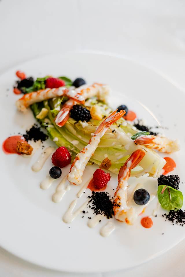 Ripieno di ricotta di bufala e gambero rosa, crema erborinata