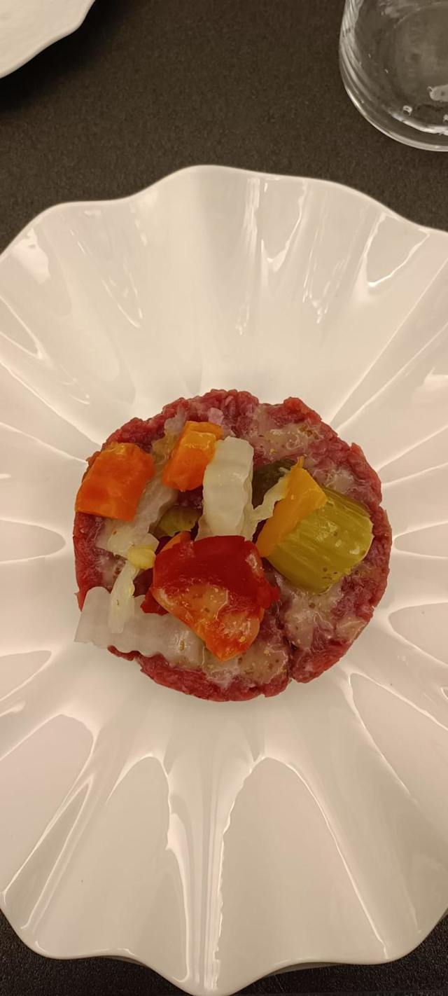 - Manzo battuto al coltello, senape delicata e giardiniera artigianale