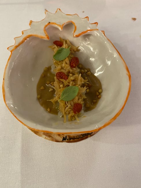 6.5/10Started amazing with a fresh cocktail on the terrace with a beautiful view of the sea. Service was excellent throughout meal with very nice waiters, presentation was creative however several dishes were below par, tuna and mackerel were worst we’ve had, amberjack and wine selection were highlights.