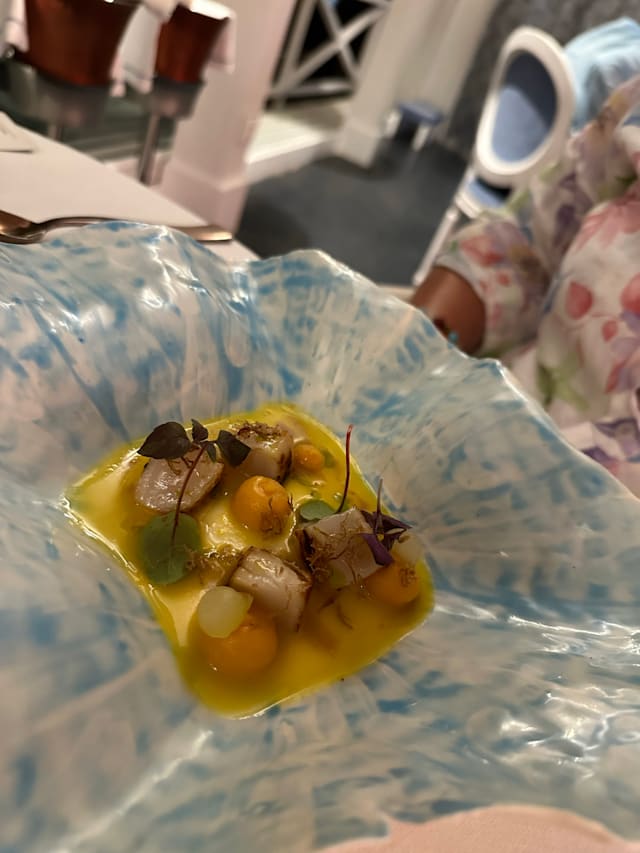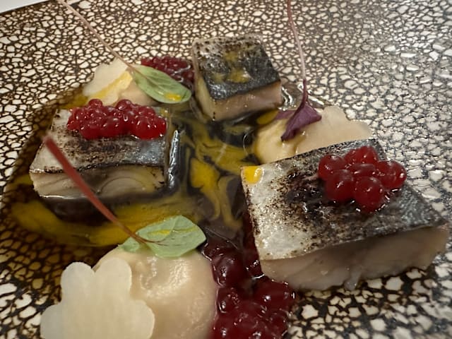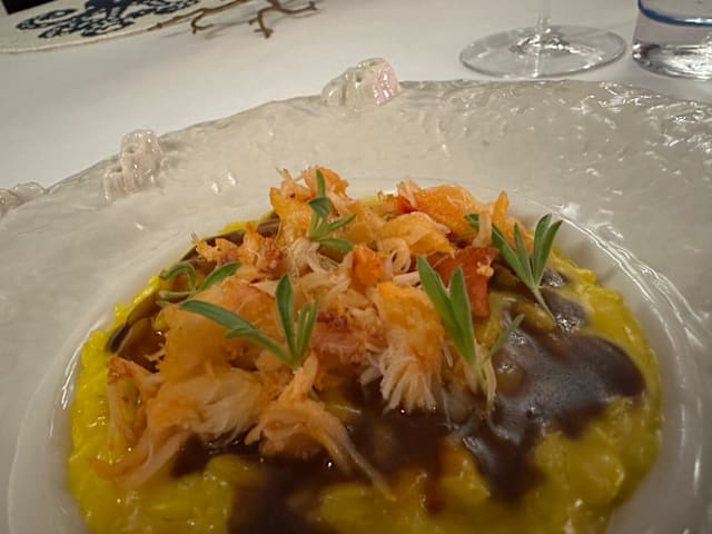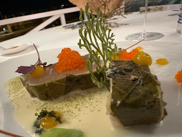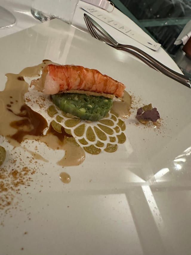 6.5/10Started amazing with a fresh cocktail on the terrace with a beautiful view of the sea. Service was excellent throughout meal with very nice waiters, presentation was creative however several dishes were below par, tuna and mackerel were worst we’ve had, amberjack and wine selection were highlights.