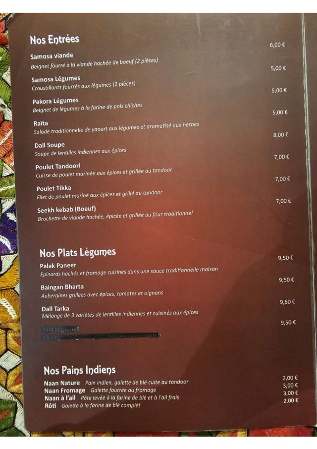 9/10nice restaurant with a good quality Indian food. You can choose your spicy level. I was with an Indian friend and unfortunately there is no menu in English, and the waitress doesn't speak either English or Hindi.