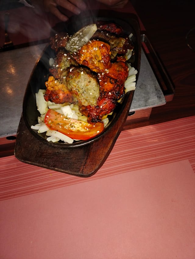 Chicken breast pieces marinated with tandoori herbs roasted in the clay-oven.