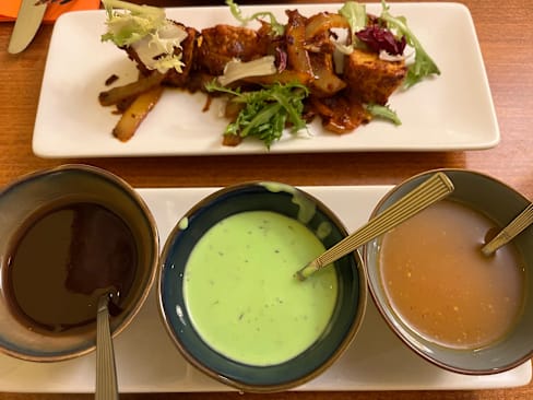 10/10This was the best curry we have had - ever. We chose chicken saag and chicken jalfrezi - both excellent. The chicken was tender and the curry flavours amazing. Also had onion naan bread which we’d recommend. Will definitely visit again when next in Madrid 😊