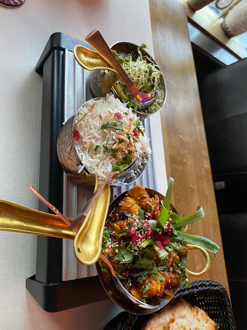 7/10A pleasant setting with impressive decor, the curry dish, however, was just unpleasantly spicy. A dish deemed to be “medium” was just pure lava so I was sadly unable to enjoy it. The dal soup that I had as a starter, however, was very flavorful. I would advise a rebalancing of the spice level or at least a reclassification of the current “medium” to “hot”.