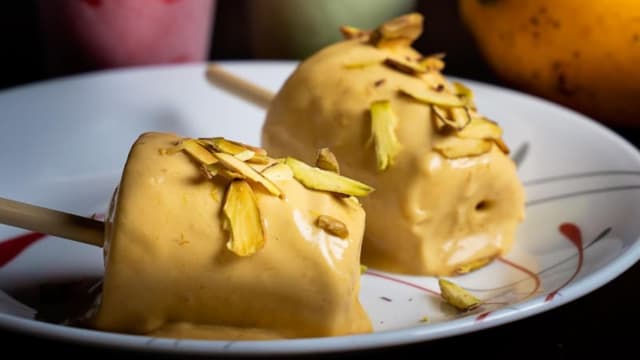 Indian sweet made from milk solids served with vanilla ice-cream, the perfect combination of hot and cold.