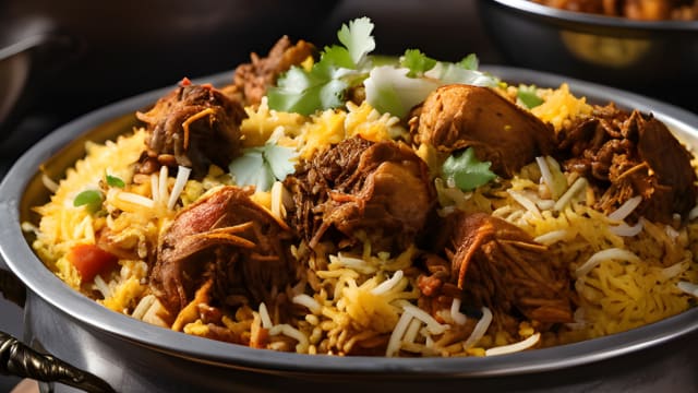 Succulent pieces of lamb slow cooked with fragrant basmati rice, infused with aromatic spices and caramelized onions.