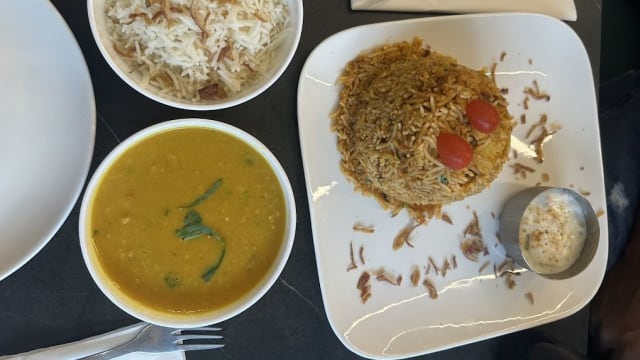 Agneau massala ou agneau kofta massala | samoussa ou pakora | légumes mixtes, riz ba smati