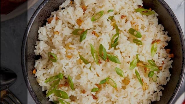 - Arroz basmati cocida con cebolla, tomate, pimiento verde y rojo