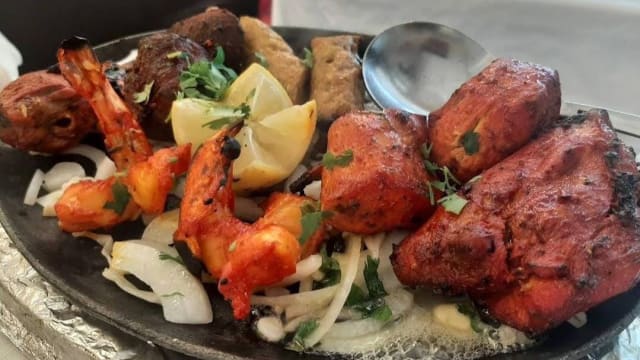 - Cordero asado al horno tandoor con pimientos, cebolla y una salsa especial de tomates.