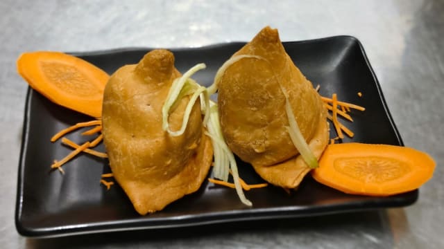 Fagottini fritti croccanti con un ripieno di patate e piselli
