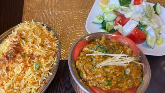 Traditioneel lamsvlees bereid in de wok met een sappige mix van vers gemalen kruiden en specerijen. Geserveerd met keuze uit geurige basmatirijst of een plain naan.