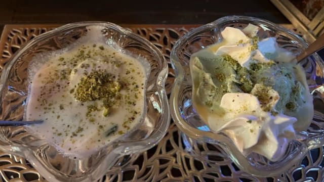 Luxureuze combinatie van saffron kheer en kulfi ijs.