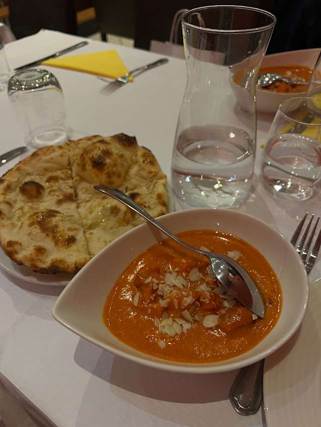 6.5/10Not much to say...not very tasty. Naan was very dry, chicken butter nothing special, Paneer Pakora taste like basic mozzarella (instead of kind of feta cheese), prawns byrianis had too much salt. very generous in quantity but I'd prefer the quality. Staff was really nice. Personally the decoration with red walls ...modern style, didn't match the wanted Indian atmosphere 😕 won't go back.