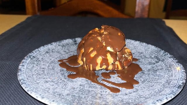 Profiteroles com gelado de baunilha de madagáscar e chocolate negro