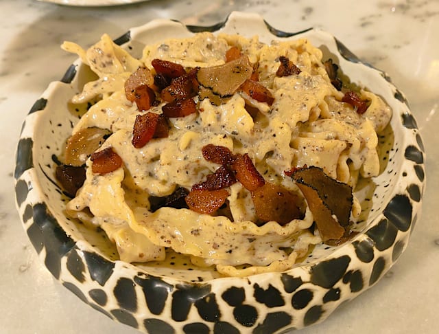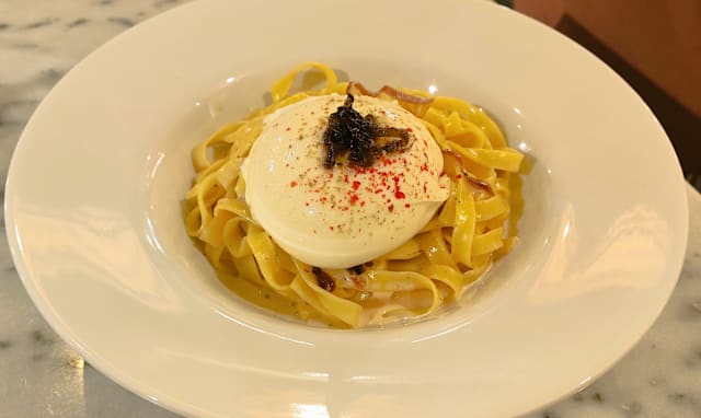 Combina una deliciosa crema de pecorino romano, yema de huevo, pimienta negra y gunciale amatriciano.