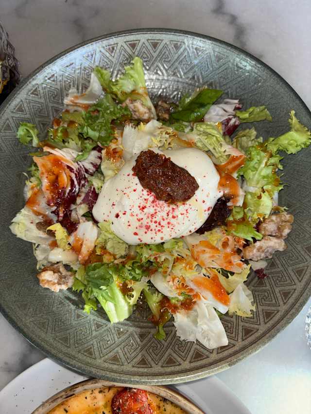 - Es una joya de la gastronomía italiana. Brotes de lechugas, irresistible burrata, tomate secchi, aceite de tomate braseado y nueces caramelizadas.