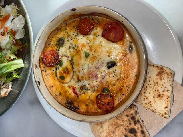 - Mix de pimientos, cebolla, tomate cherry, alcaparra y queso provolone fundido. Perfecto para acompañar con nuestro pan casero.