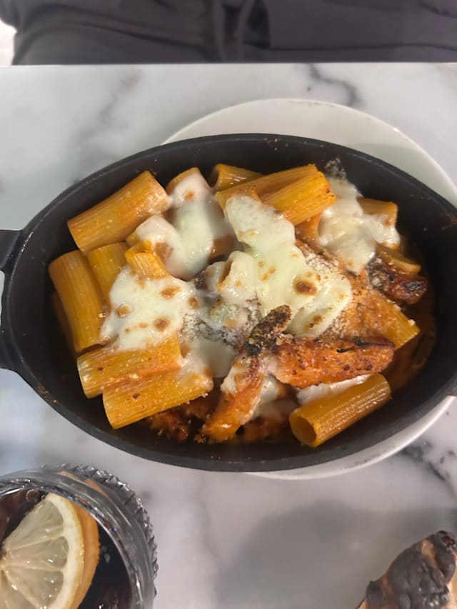Deléitate con un clásico. Carne picada, salsa pomodoro con lascas de parmesano.