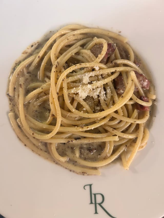 Combina una deliciosa crema de pecorino romano, yema de huevo, pimienta negra y gunciale amatriciano.