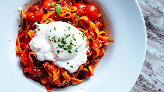Para los amantes de la pasta y la frescura. Cremosa burrata, verduras salteadas y salsa pomodoro.