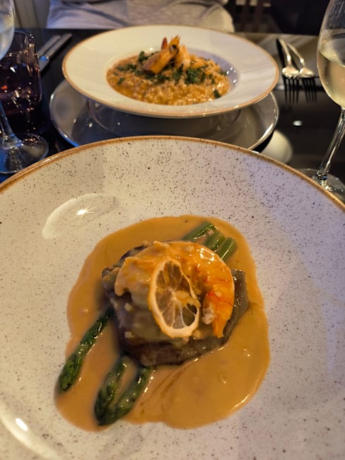 6.5/10small plates , pasta was reheated, fish was of no interest. Appetizer was not fresh and not tasty. The restaurant does not correspond to the hotel level. Almost impossible to find a parking place.